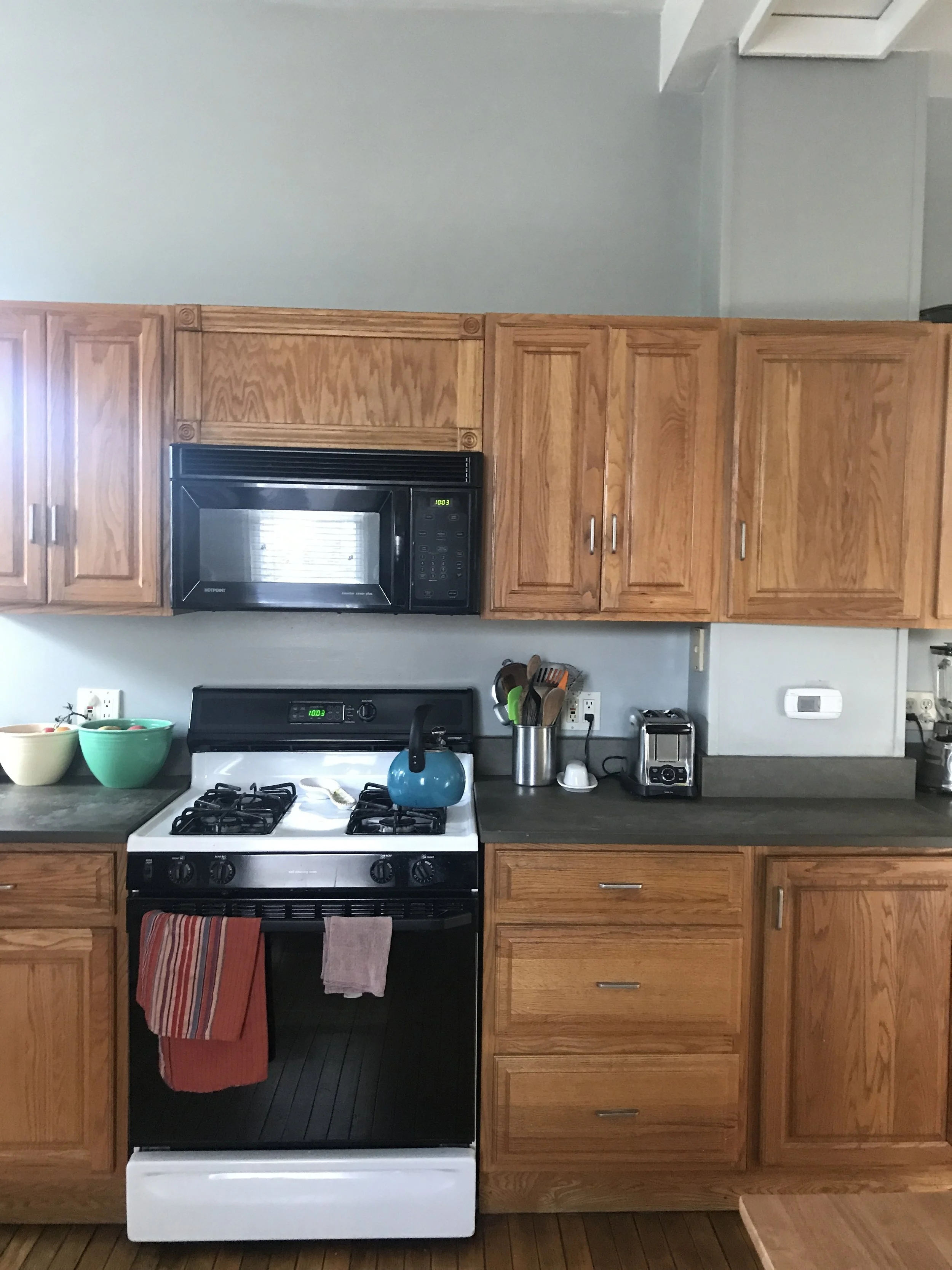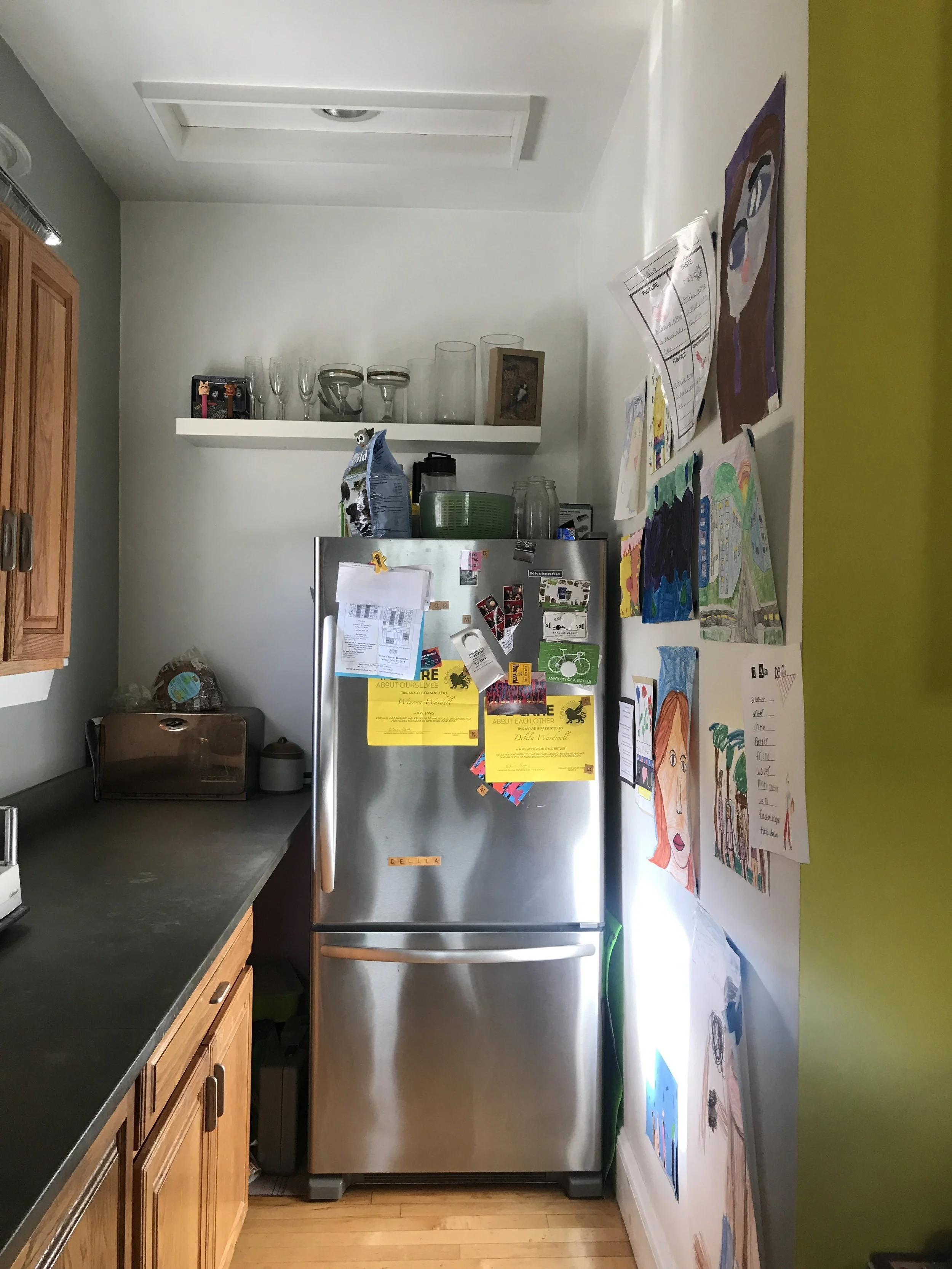 BEFORE: The empty space above the cabinets proved to be ideal for expanding storage.