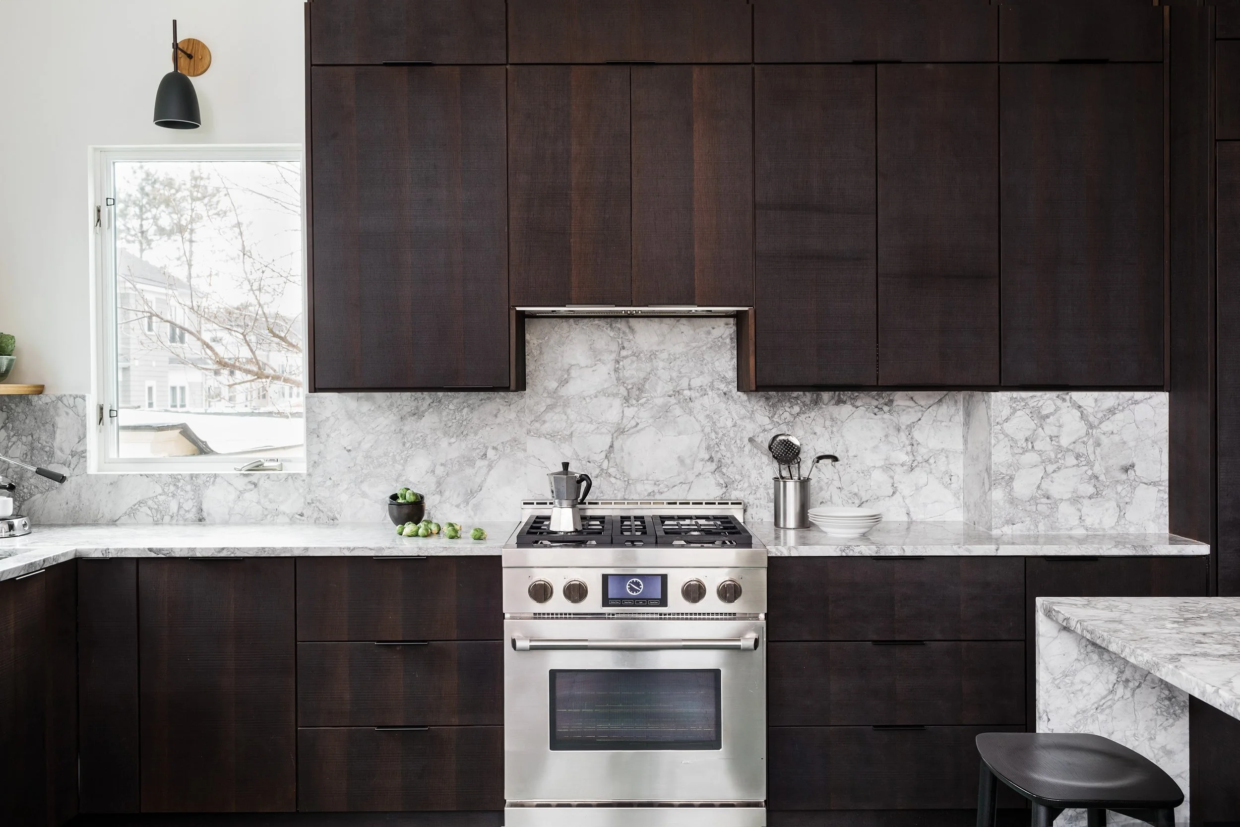 The new kitchen has textures and features materials with character in a casual atmosphere, which reflects warm minimalism. “We don’t live as formally as we once did. I believe in usable yet beautiful spaces,” Sashya says. “The black accents in the hardware, lighting, and cabinetry were all concepts that stemmed from the stove finish. The client loved the black, which is quite unusual, so here we had the opportunity to be more artistic and create something unique for them.”