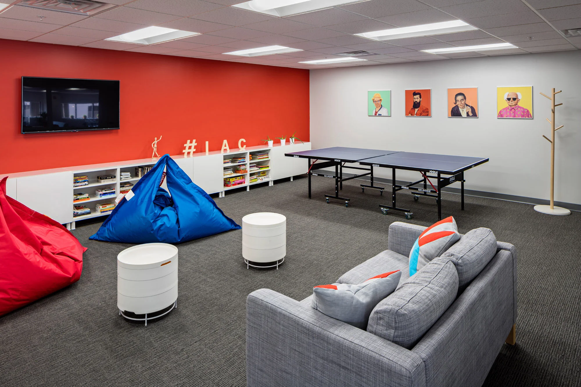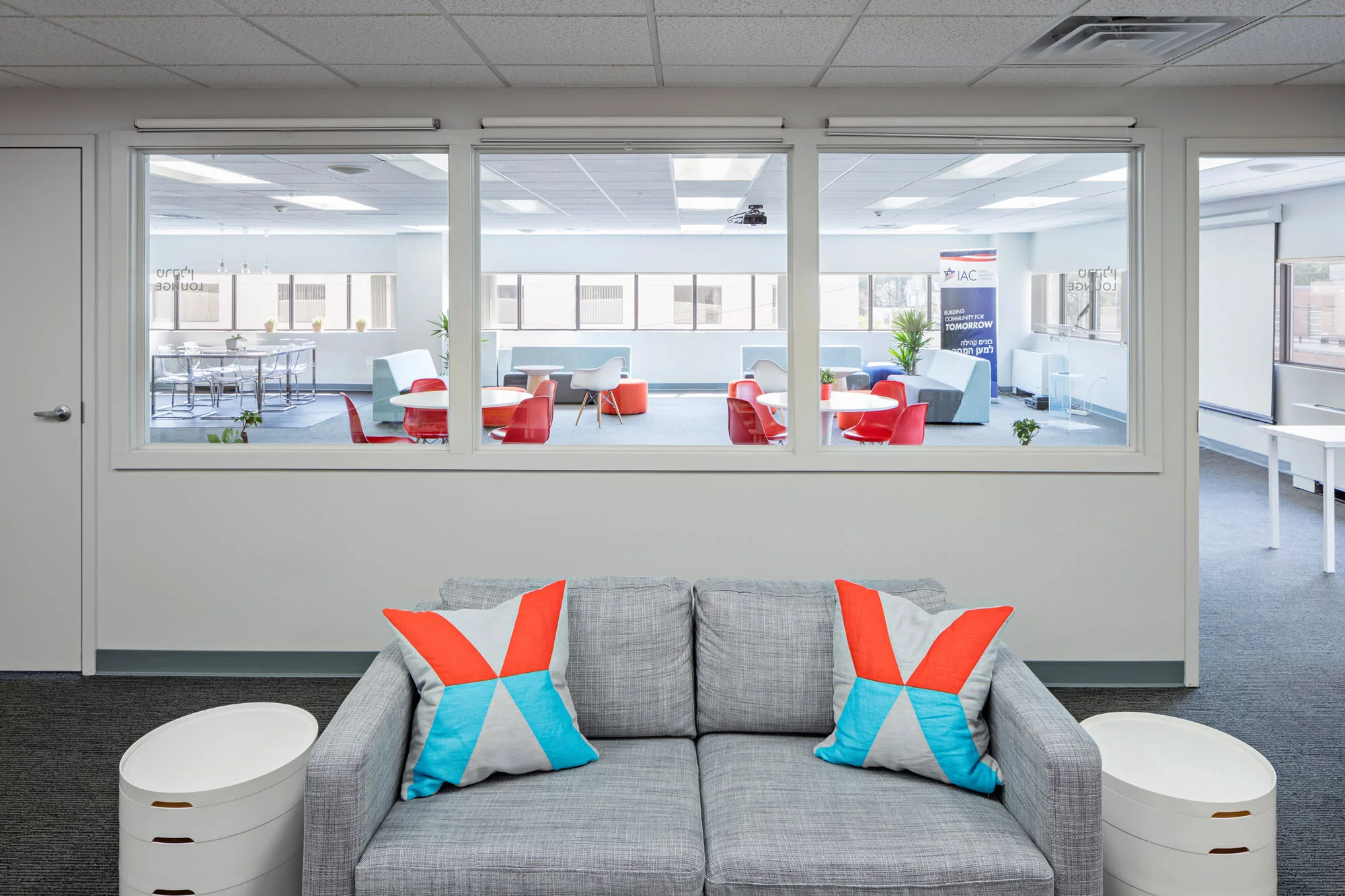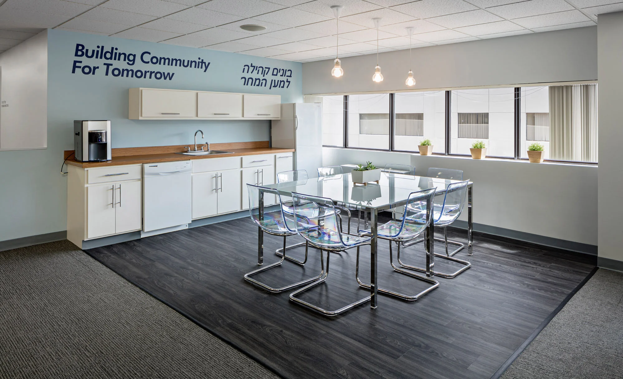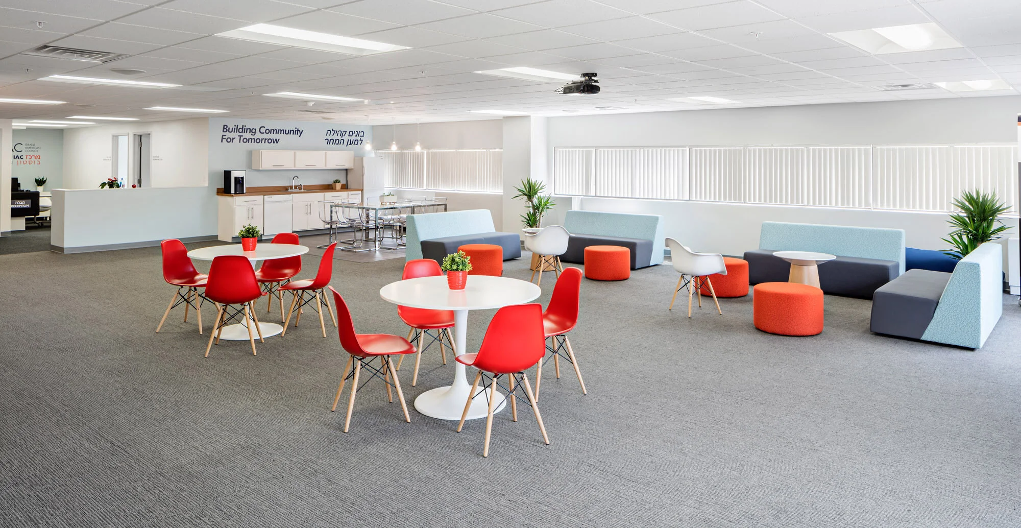 The IAC is a non-profit organization set up to support the Israeli American Community in Boston. The space is designed to accommodate large groups of people and activities. The seating is multi-functional and can be moved to add 75 chairs for seminars and meetings. The space is frequented by a varied demographic from teens, young mothers to seniors.