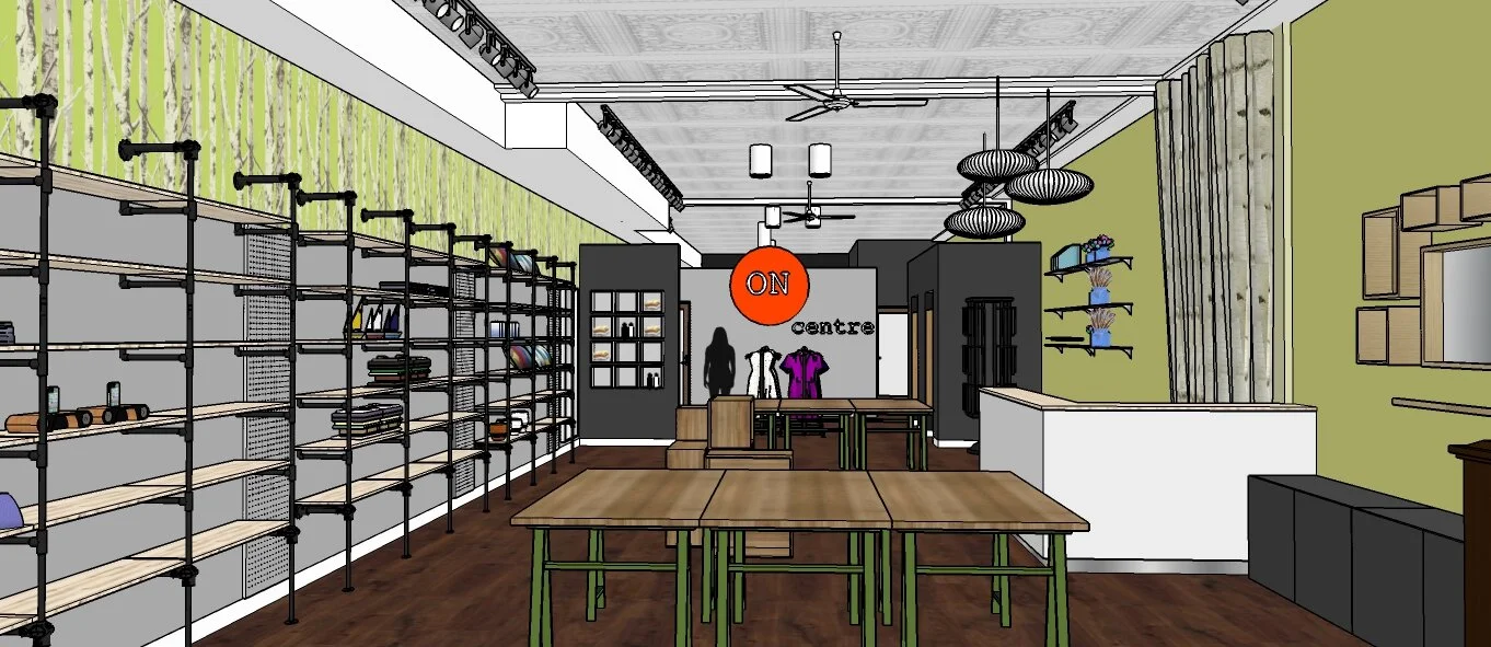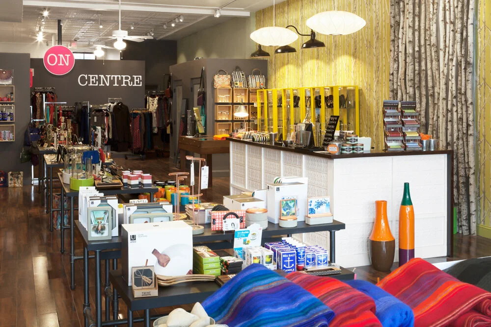 On Centre is a gift and clothing store situated in the eclectic neighborhood of Jamaica Plain. The palette and wallpaper were designed to reflect the fun and casual experience of shopping there.